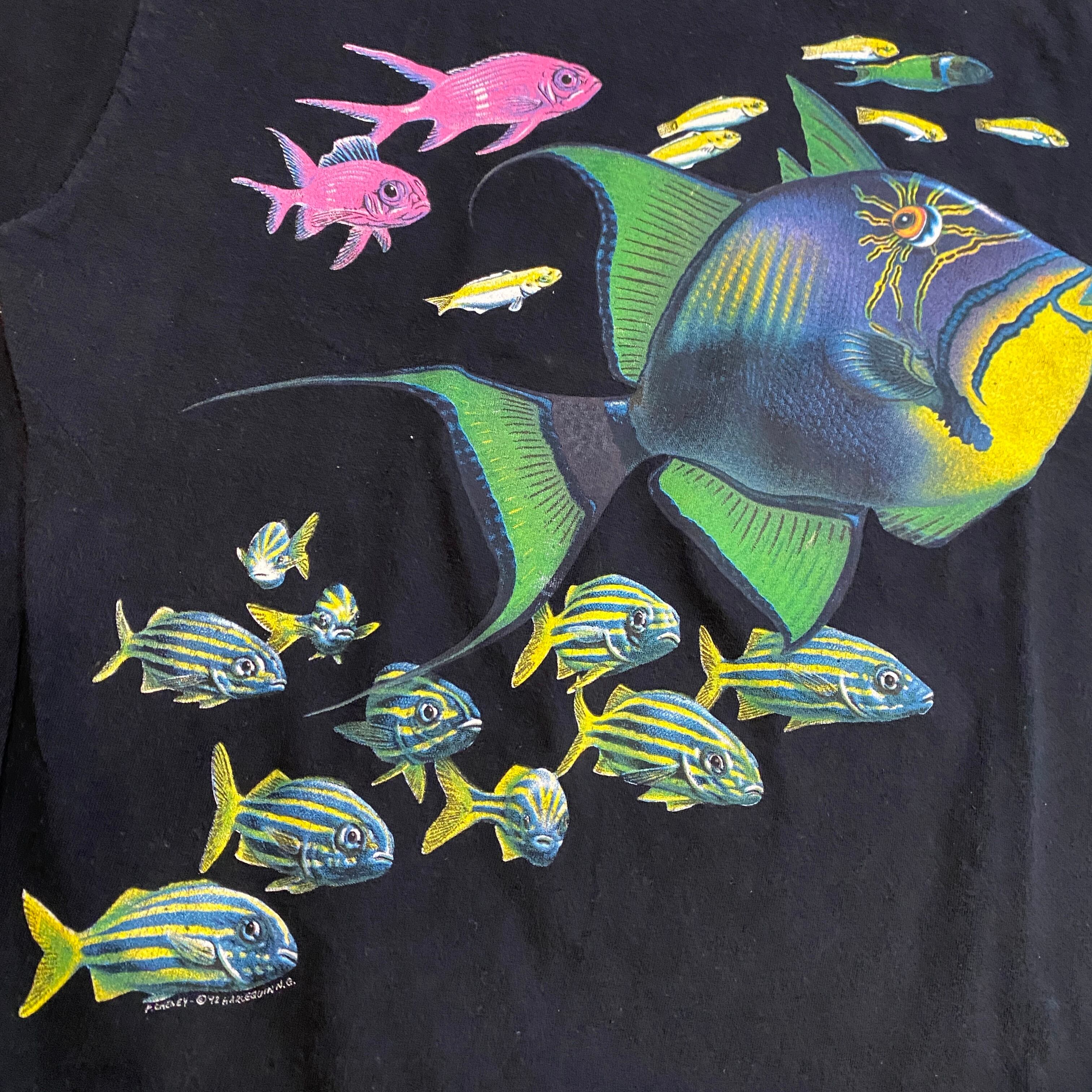 VINTAGE 90S FISH 熱帯魚 TSHIRTS L BLACK