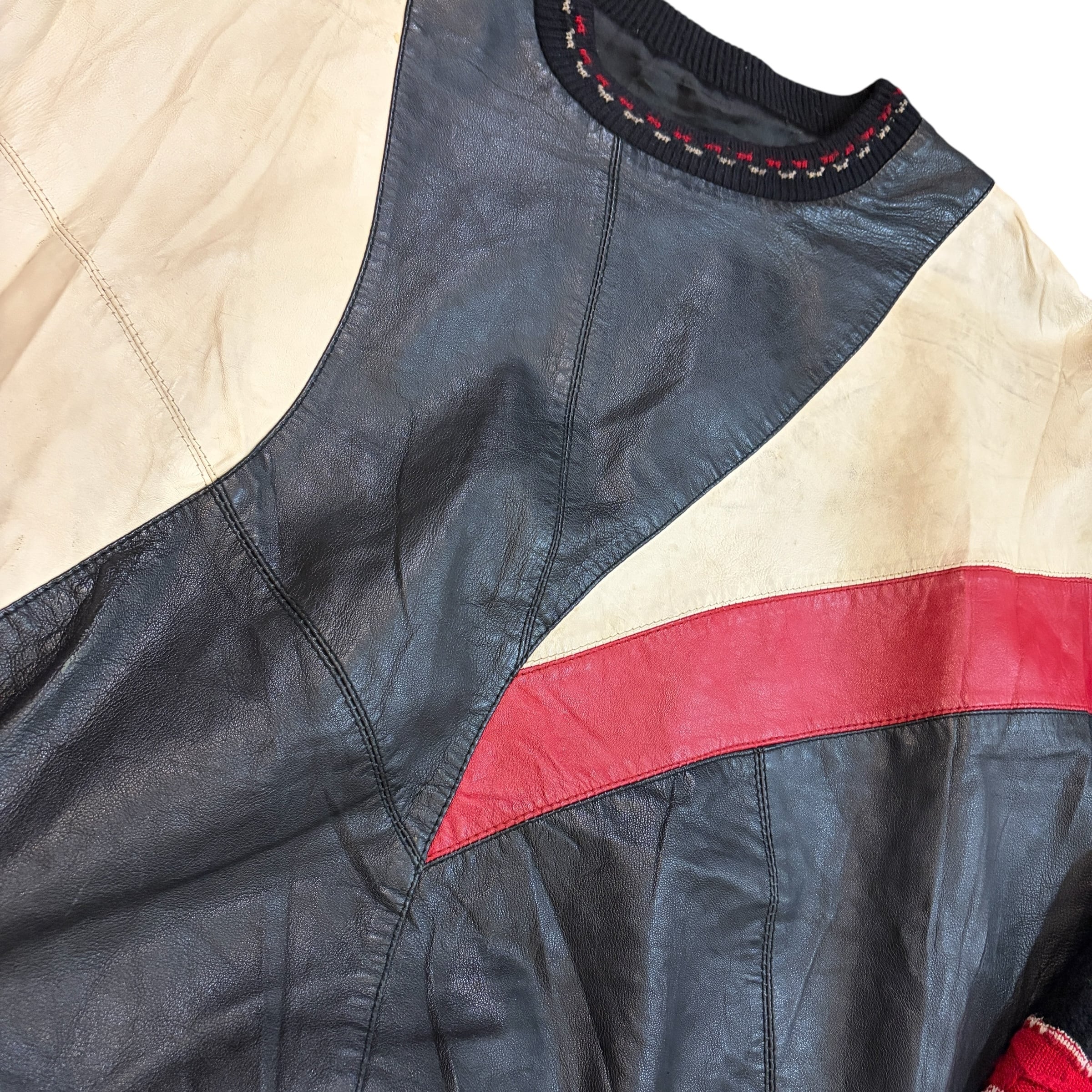 VINTAGE 90S LEATHER×KNIT レザー ニット SWEATER セーター XXL