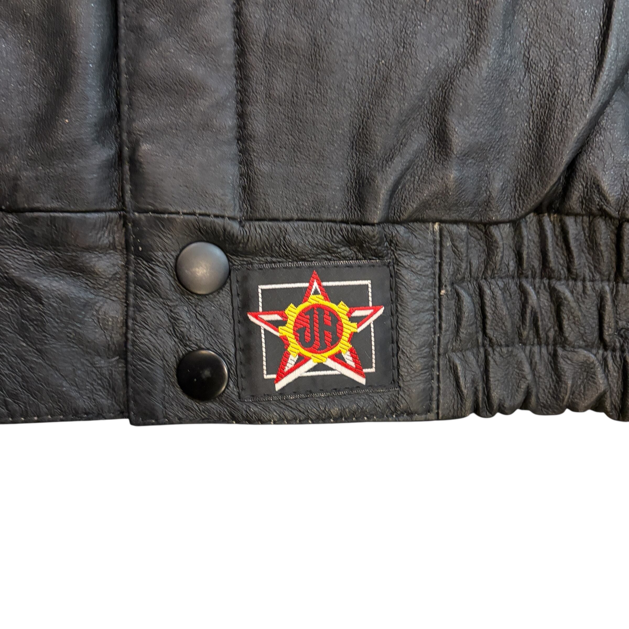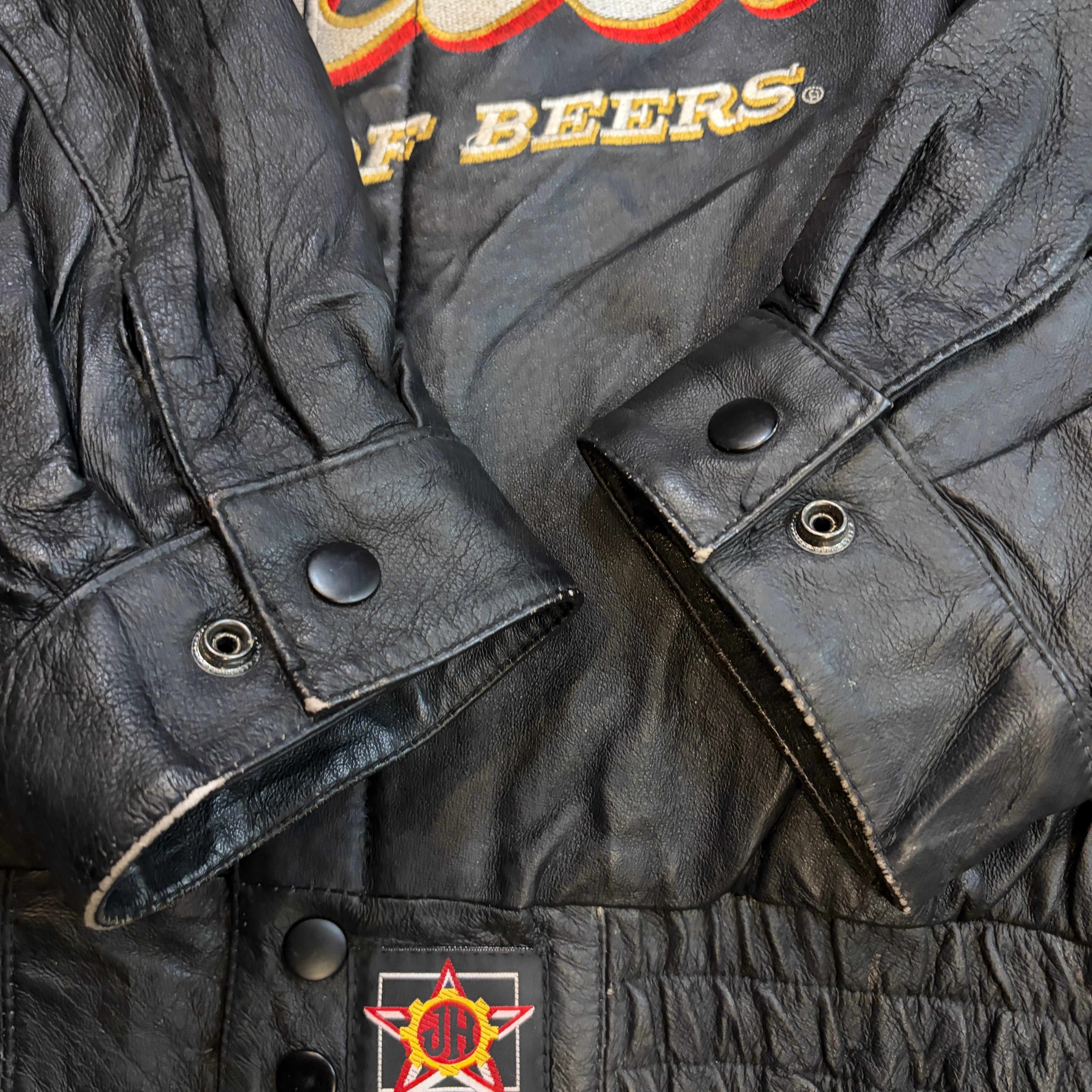 VINTAGE 90S JEFHAMILTON ジェフハミルトン BUD バドワイザー RACING LEATHER JACKET レーシング レザージャケット L BLACK