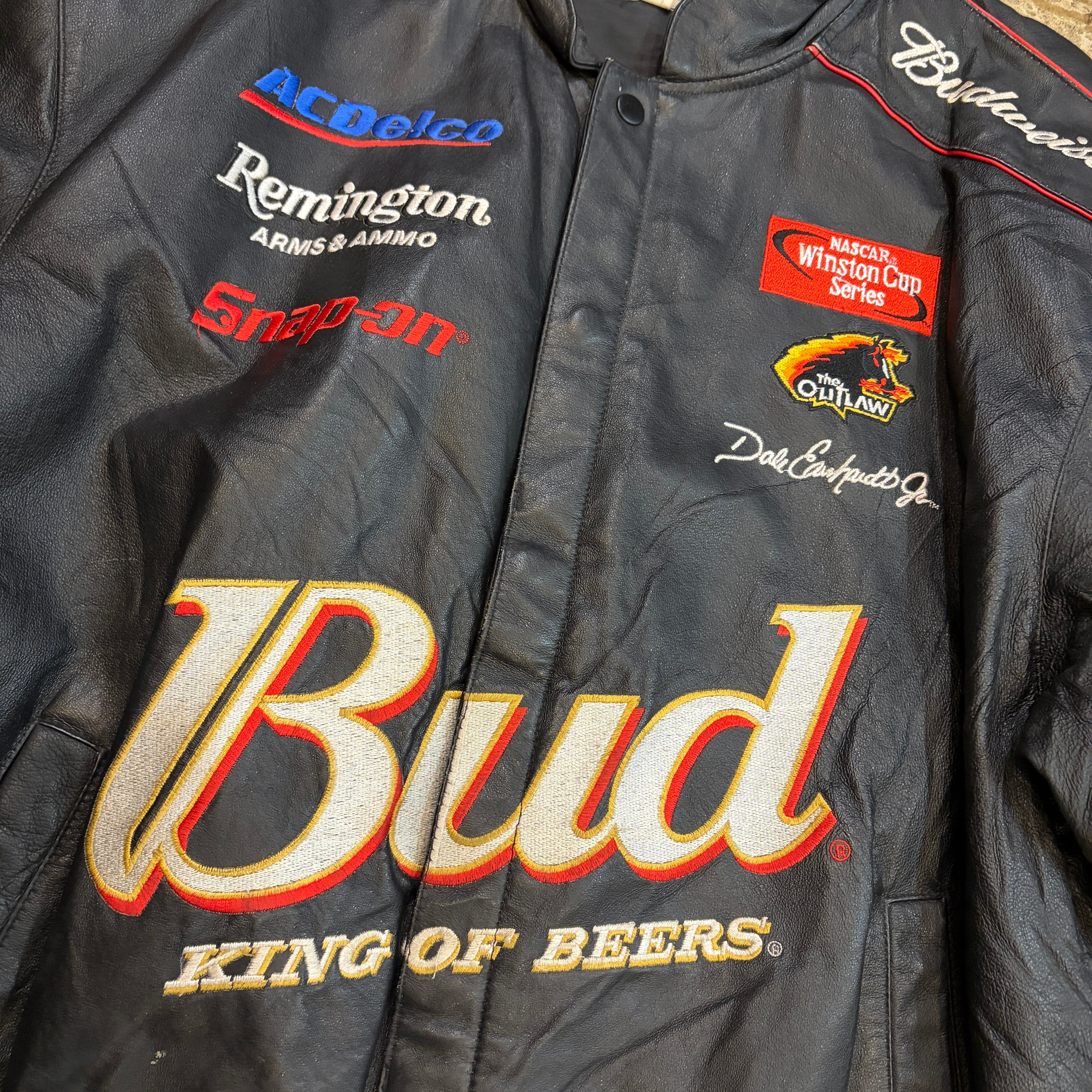 商品名 ビンテージ 90年代 ジェフハミルトン バドワイザー ナスカー ロゴ刺繍 レザージャケット