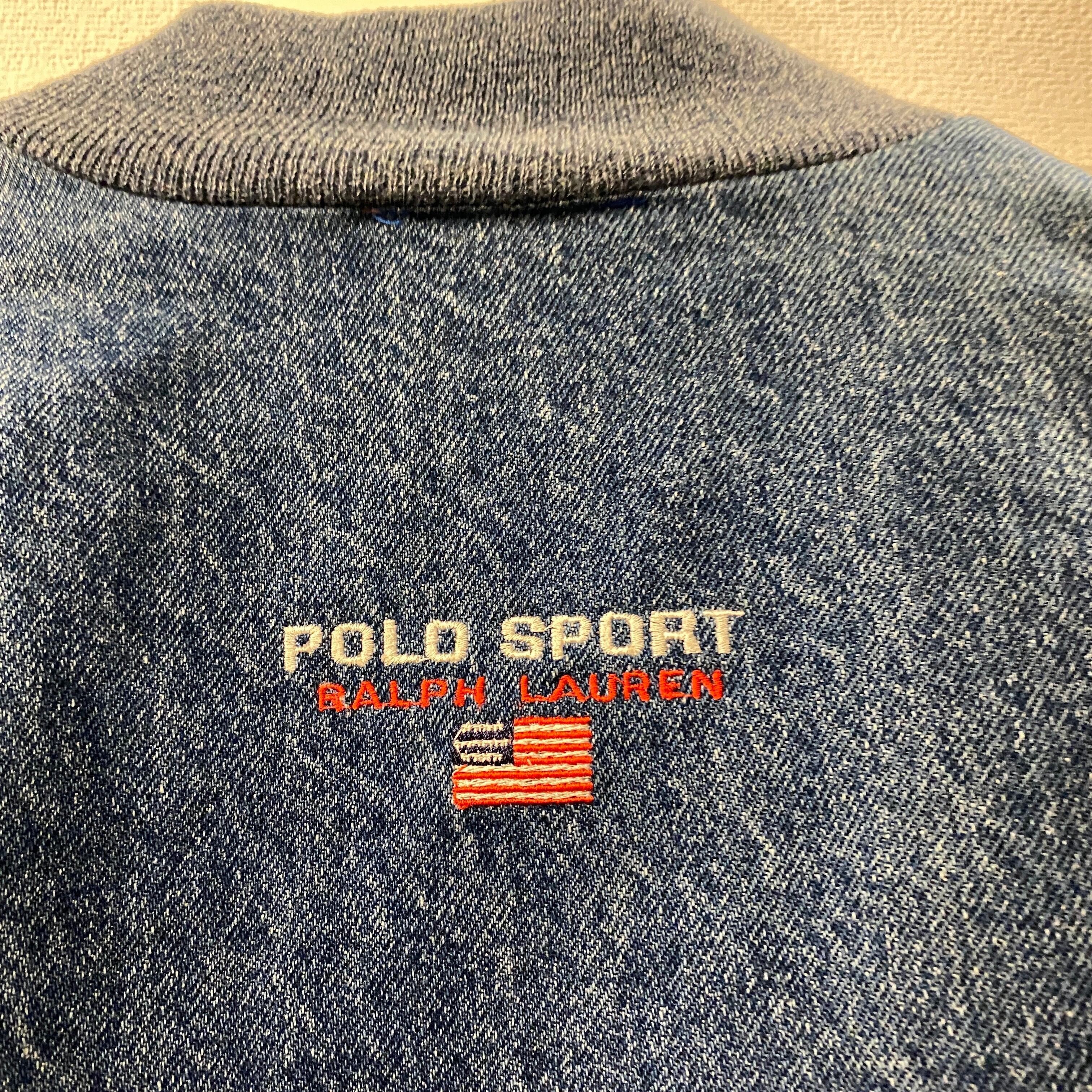 ビンテージ 90年代 ポロスポーツ ロゴ刺繍 デニム×スウェット スタジアムジャケット