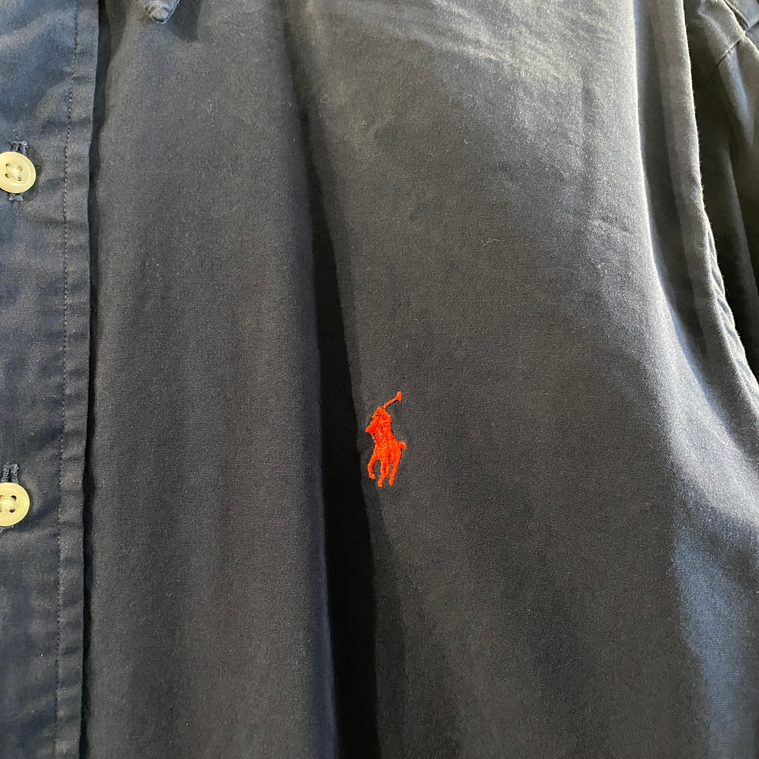 ビンテージ 90年代 ラルフローレン ロゴ刺繍 ボタンダウンシャツ L ネイビー