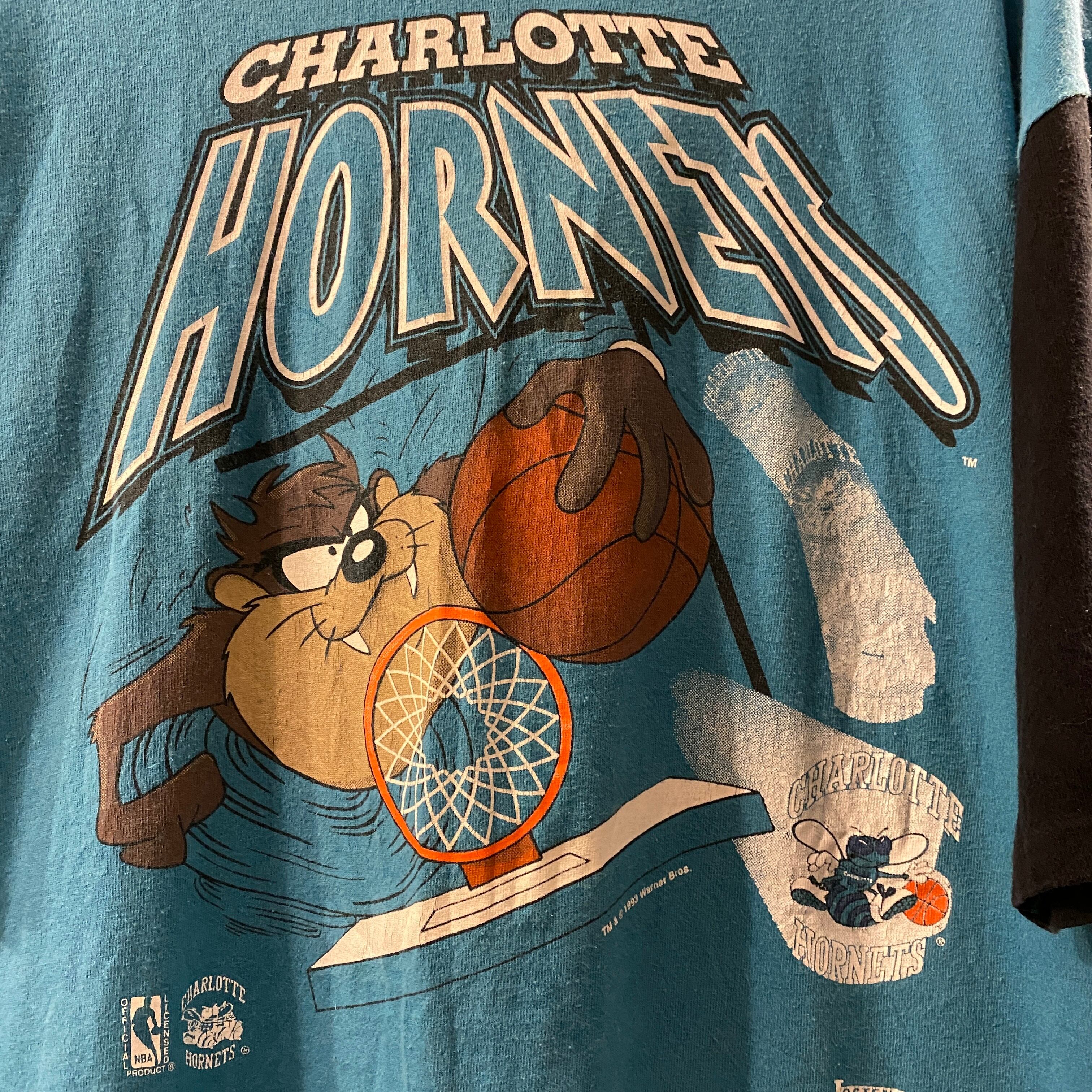 ビンテージ 90年代 ルーニーテューンズ×ホーネッツ フーディー Tシャツ L サックス×ブラック