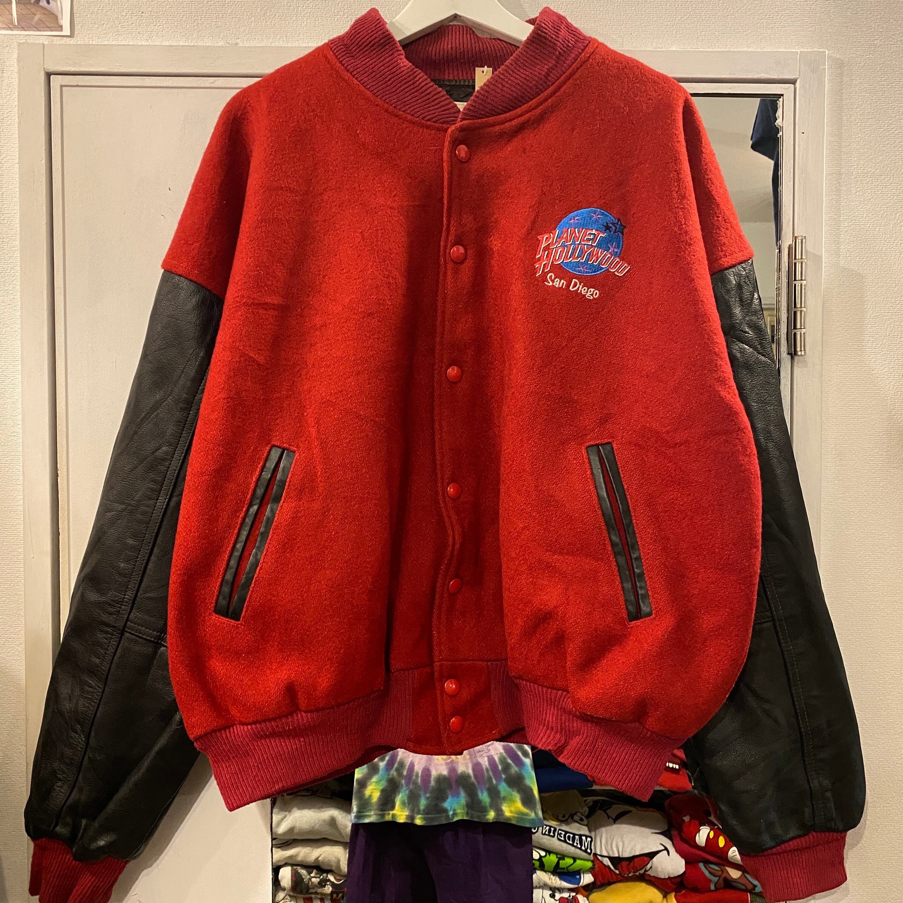 ビンテージ 90年代 プラネットハリウッド ロゴ刺繍 スタジアムジャケット L レッド×ブラック