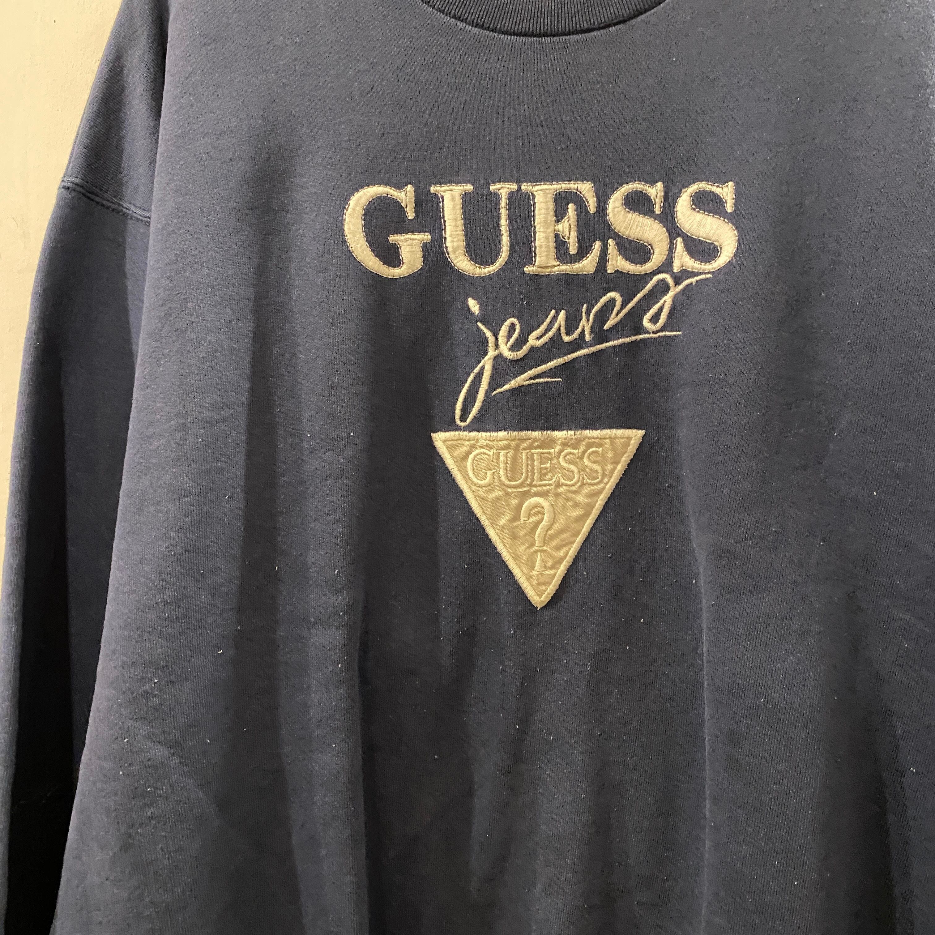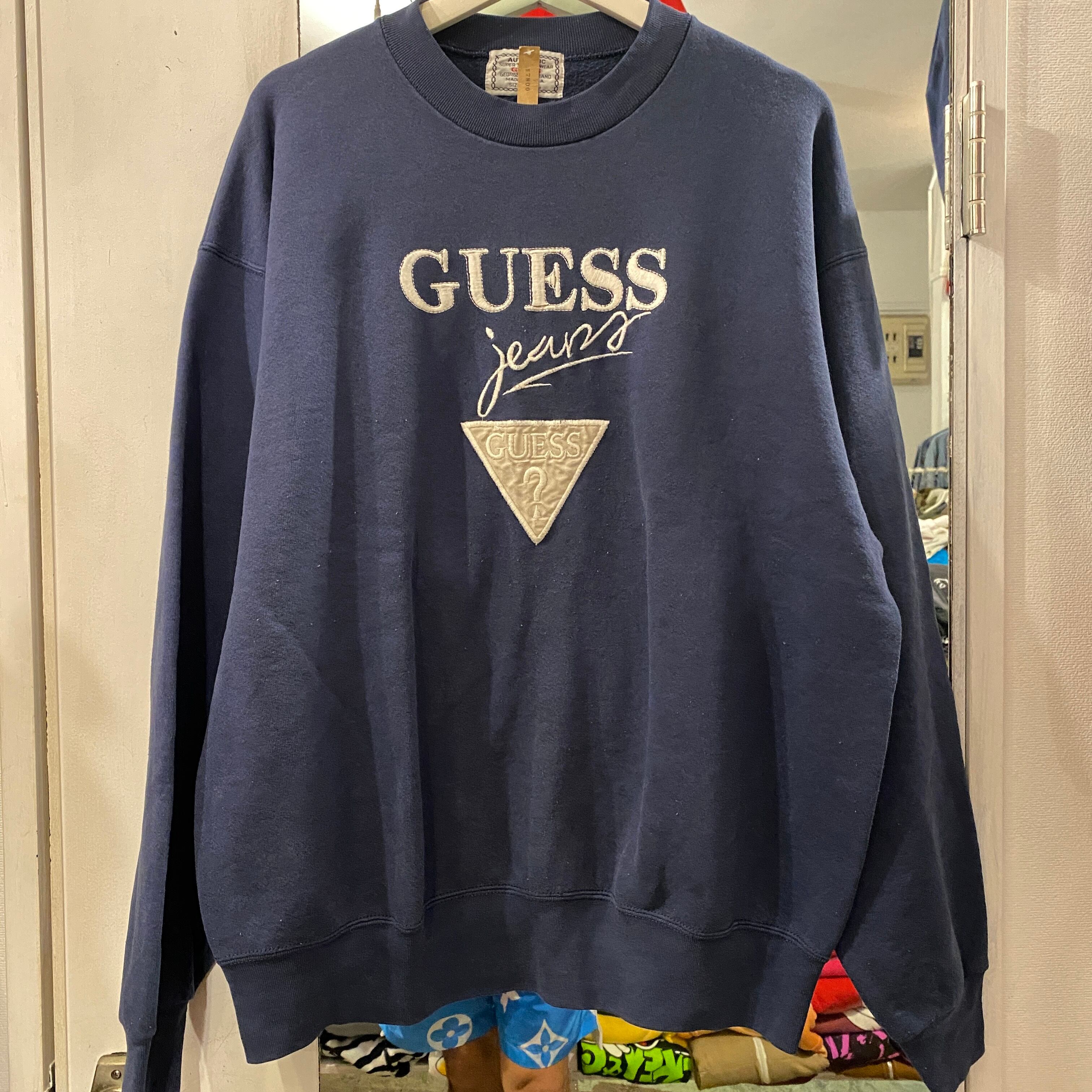 ビンテージ 90年代 GUESS ロゴ刺繍スウェット XL ネイビー