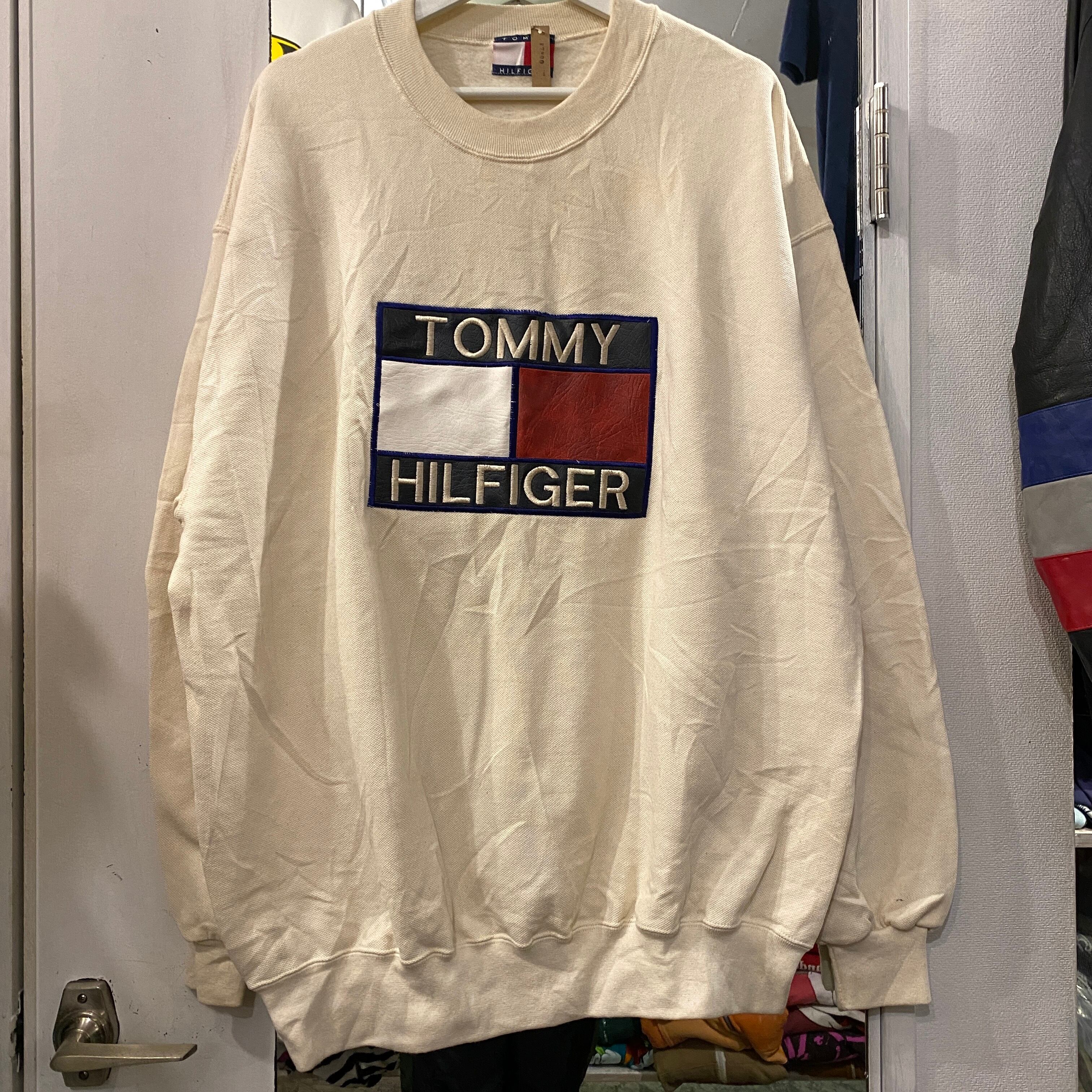 ビンテージ 90年代 トミーヒルフィガー ロゴ刺繍 スウェット XL 生成り
