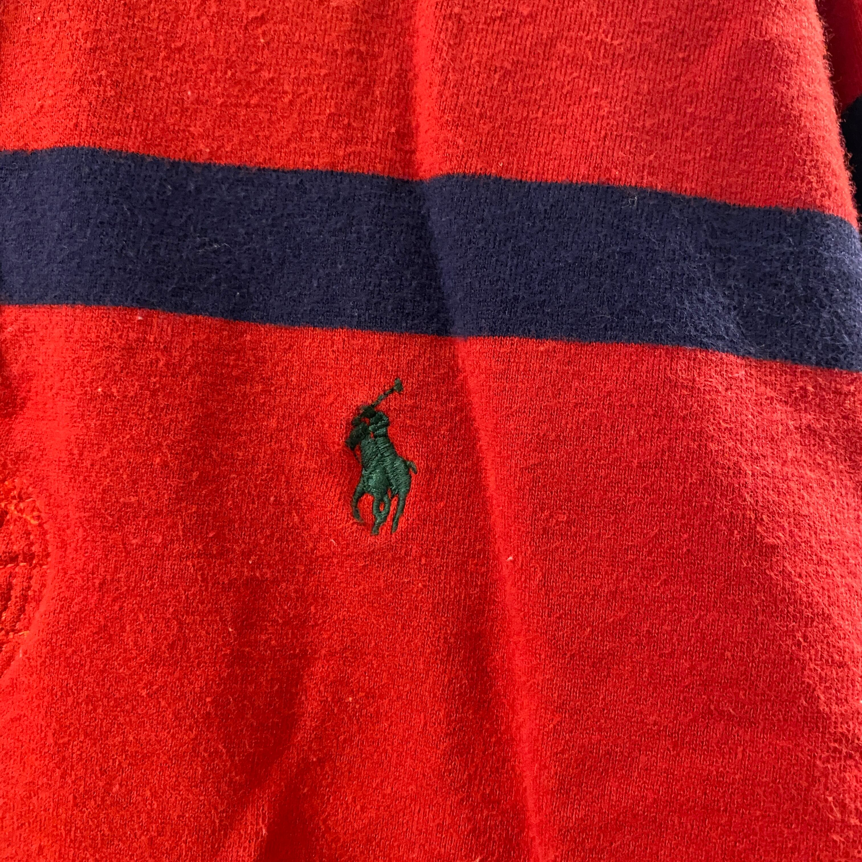 USED ラルフローレン ロゴ刺繍 ラガーシャツ M レッド×ネイビー