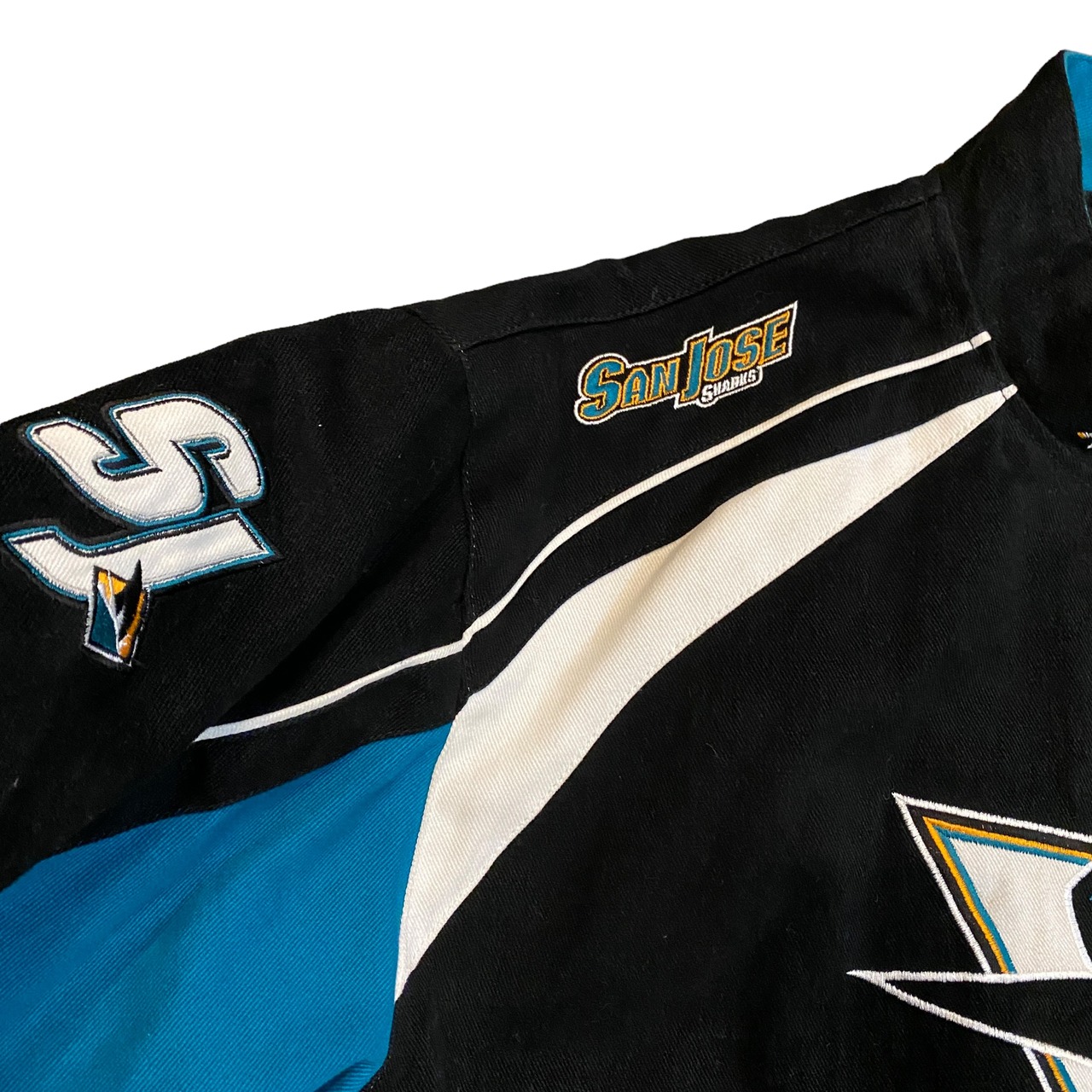 商品名 ビンテージ 90年代 NHL シャークス ロゴ刺繍レーシングジャケット