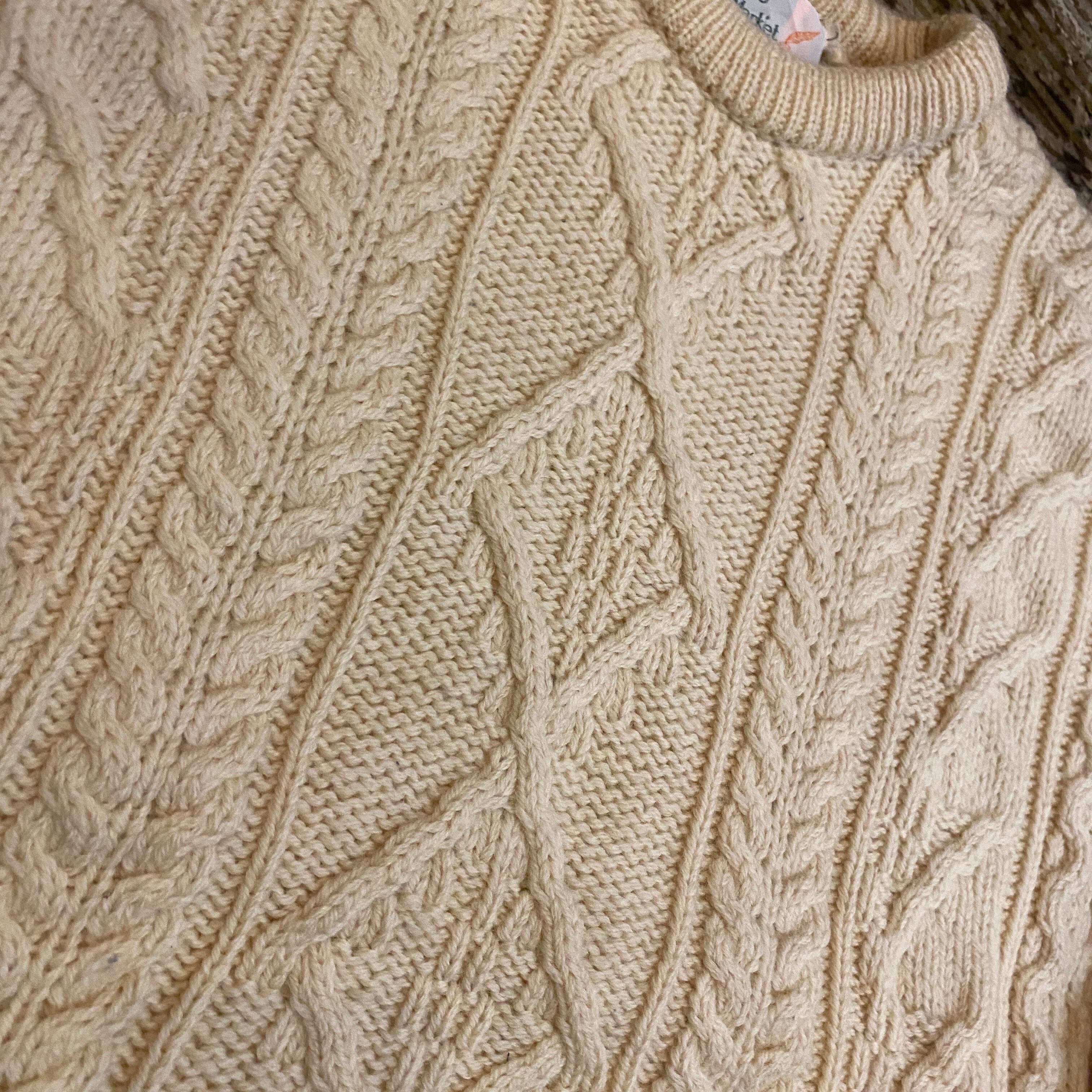 VINTAGE 80S MADE IN IRELAND FISHERMAN SWEATER L CREAM