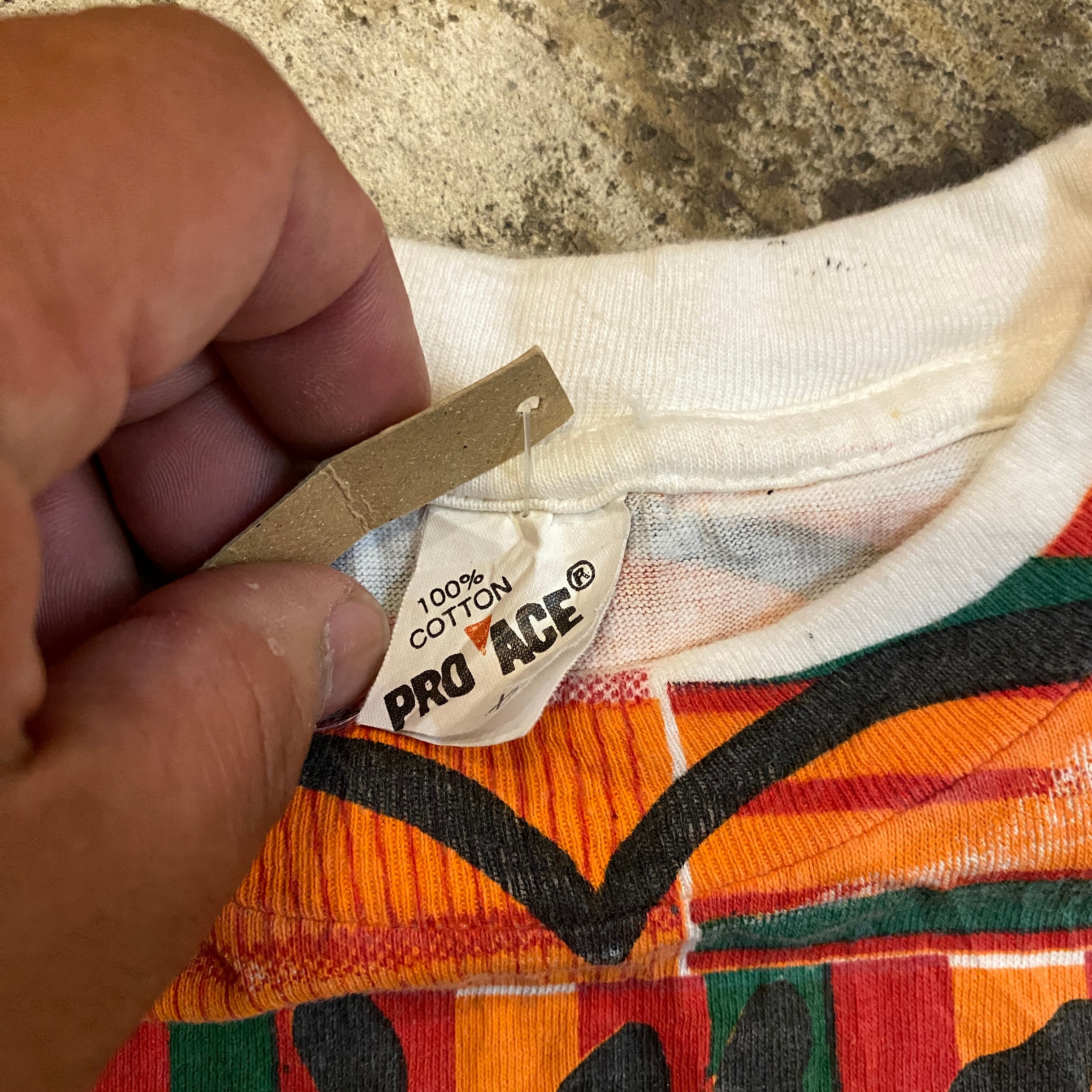 貴重な手刷りプリントなので襟元リブまでガッツリプリント入ります
